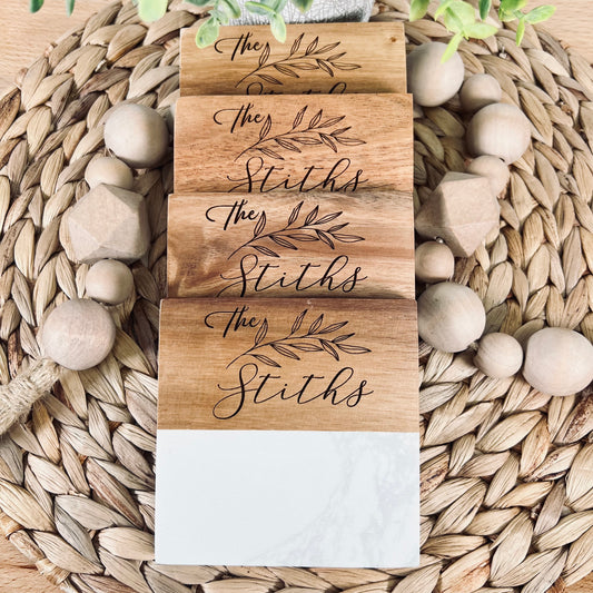 Marble & Wood Coaster Set
