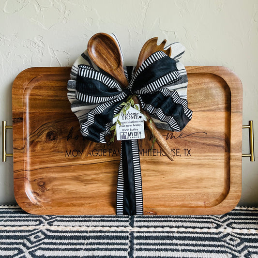 Custom Gift Set-Wood Serving Tray + Serving Spoon Set with Towel